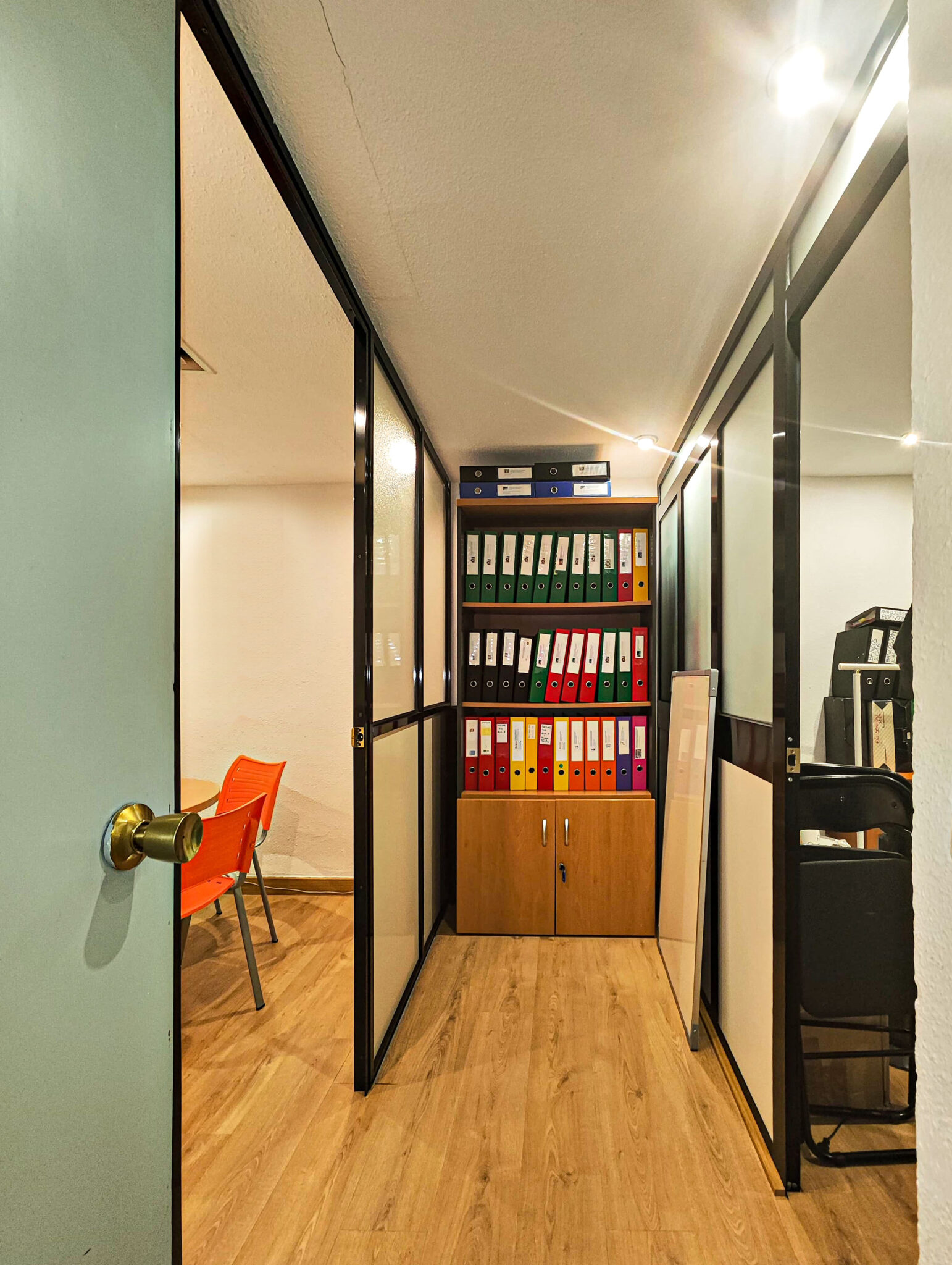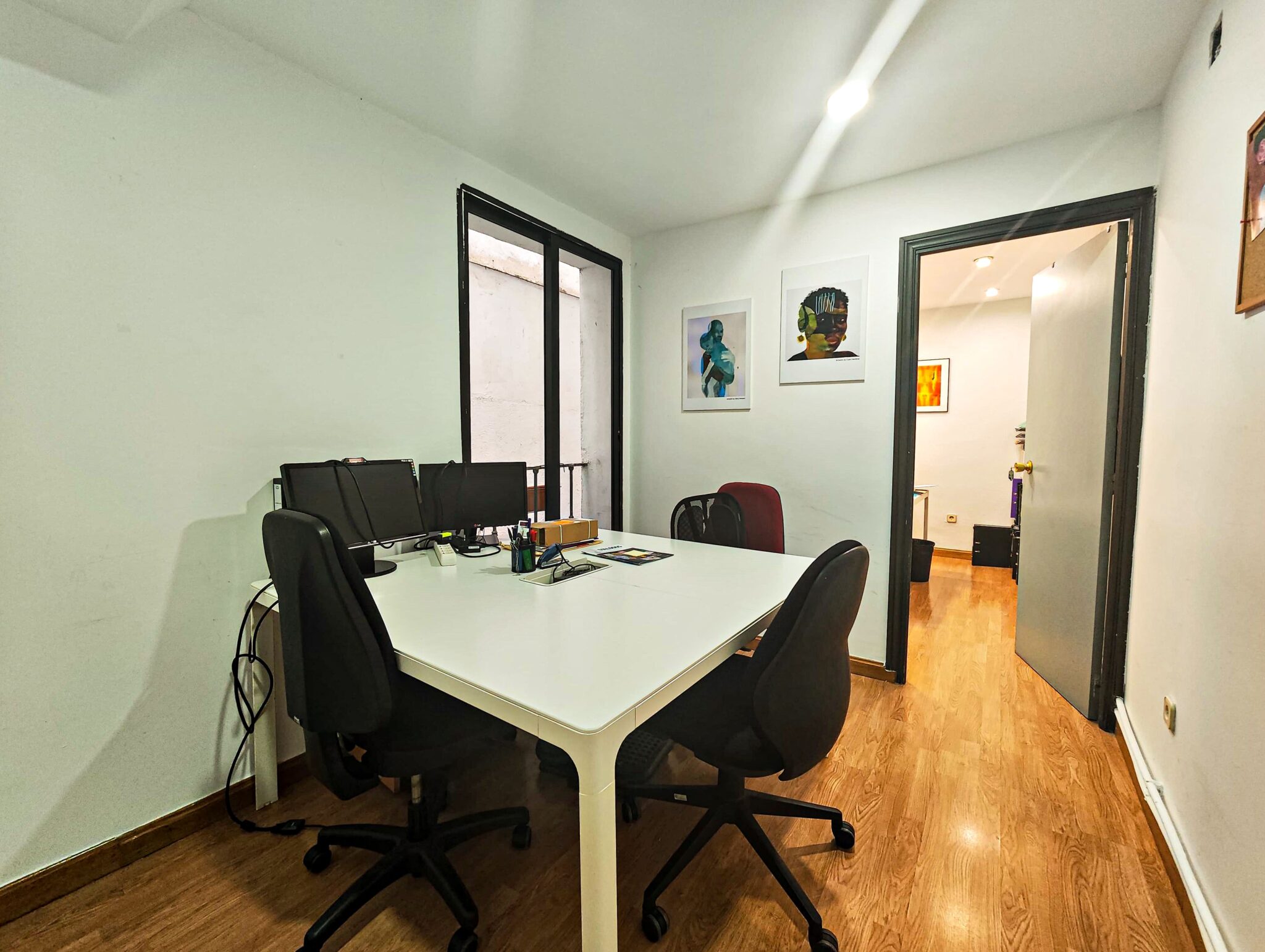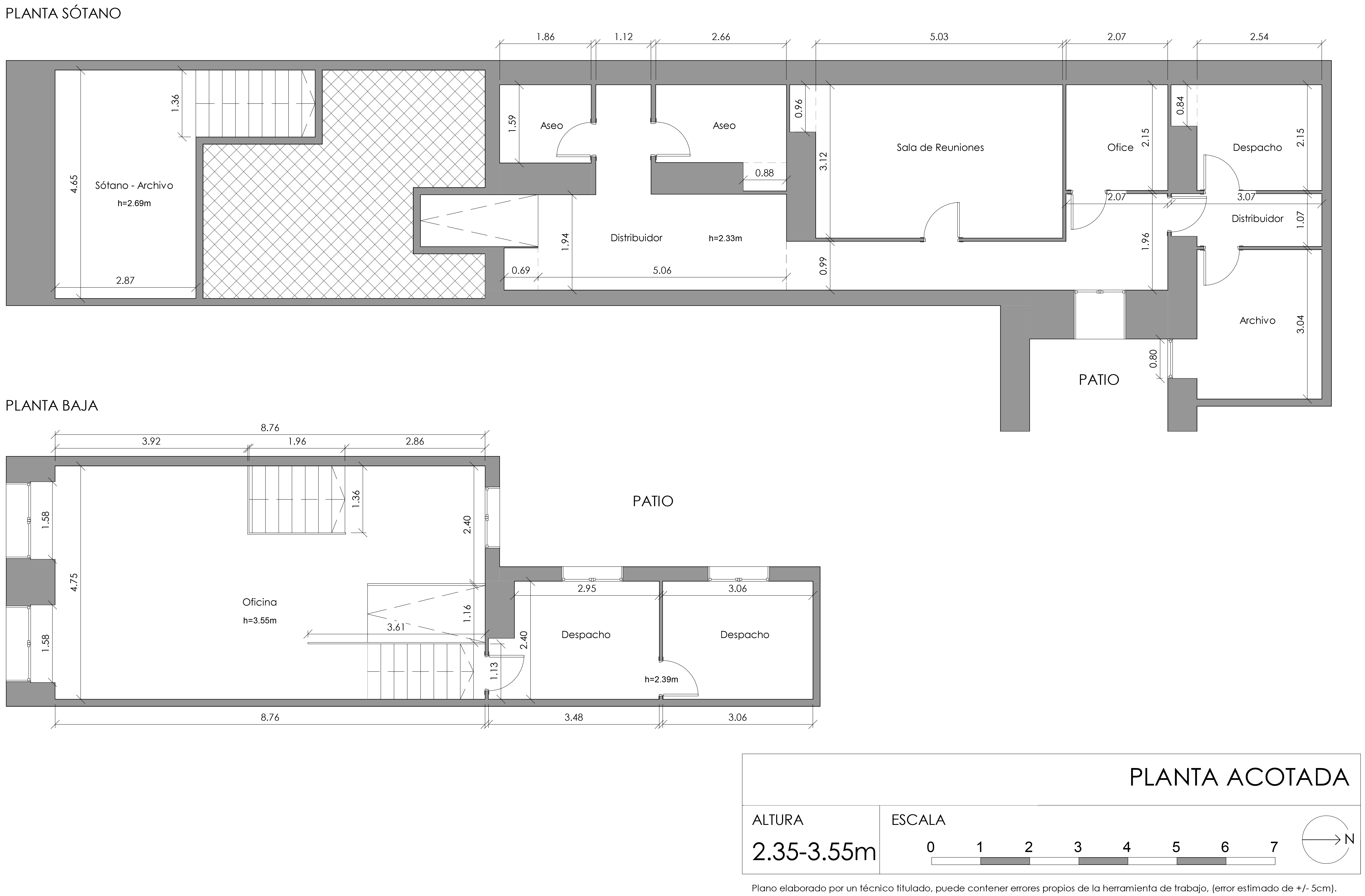 PLANTA BAJA: Pasillo, distribuidores, 2 baños, sala de reuniones, office, dos estancias y patio interior con usufructo compartido.