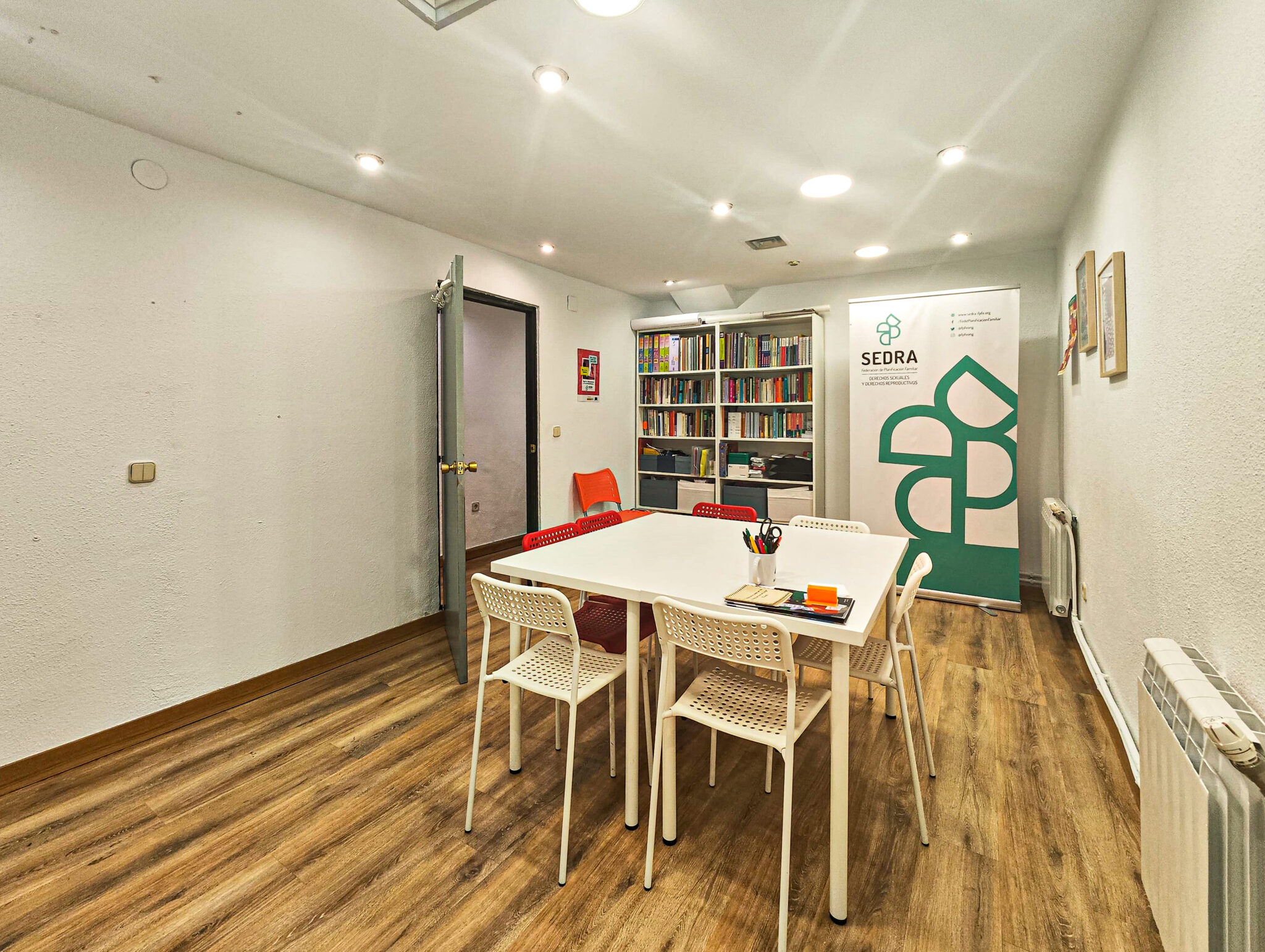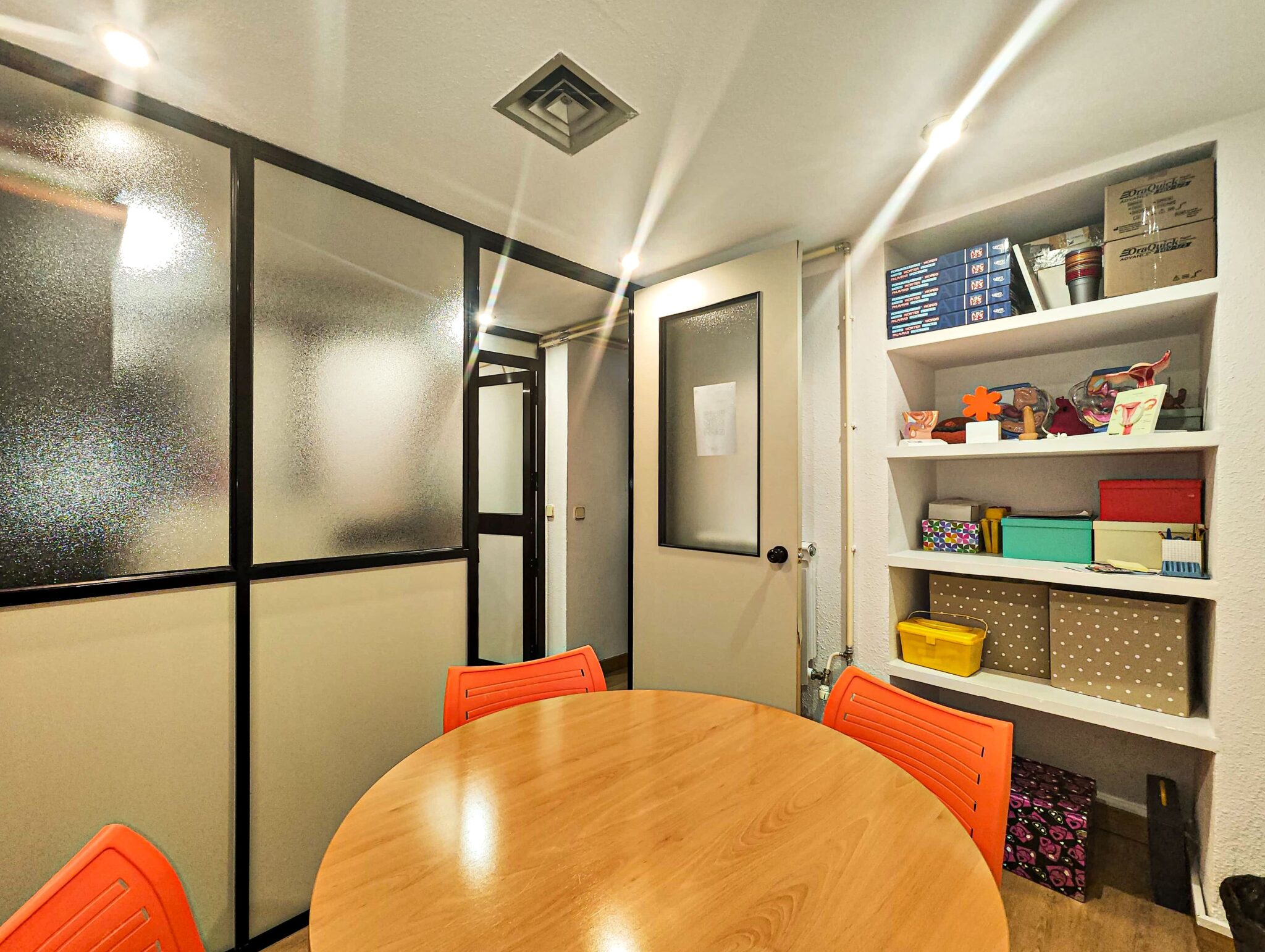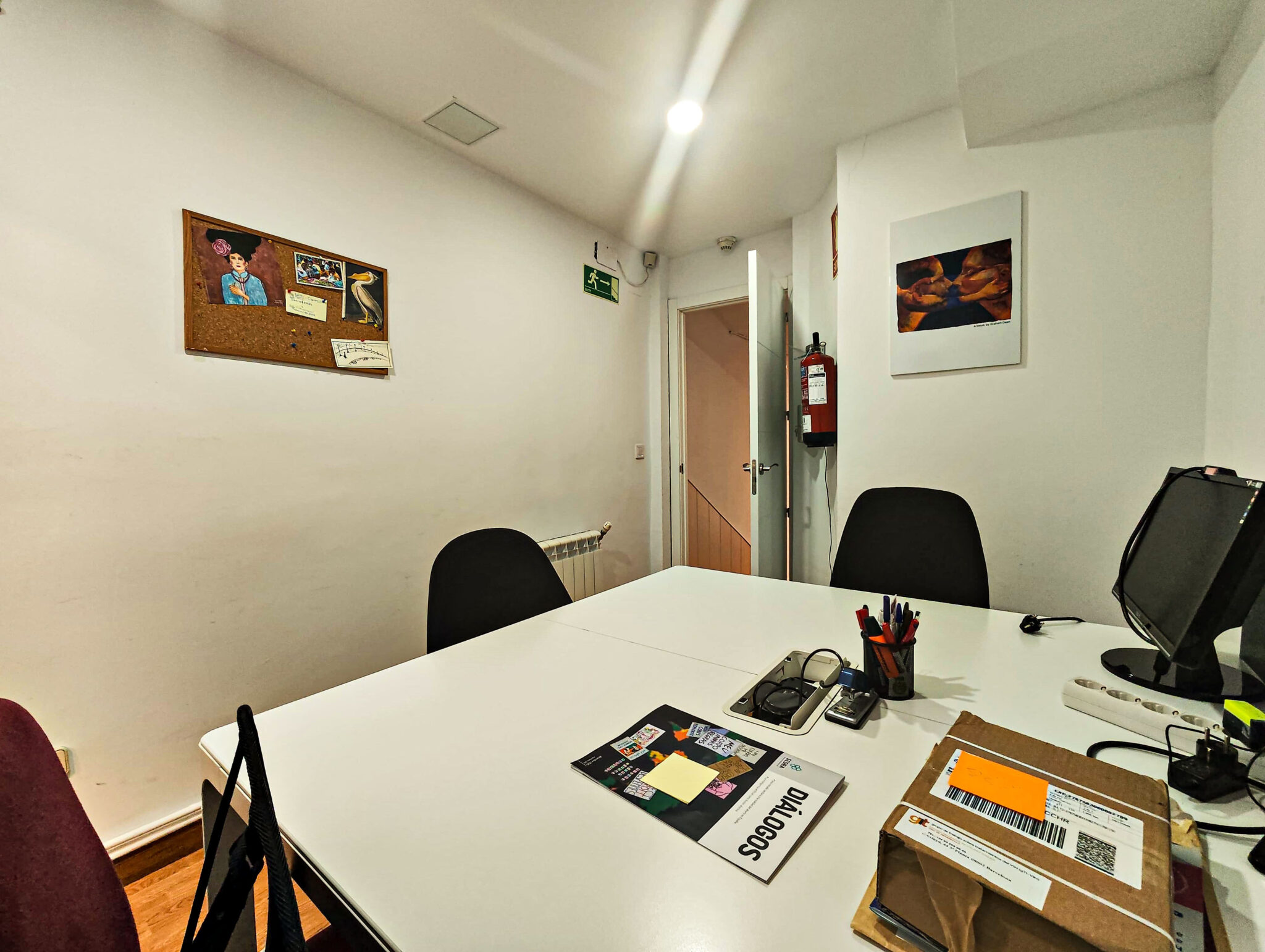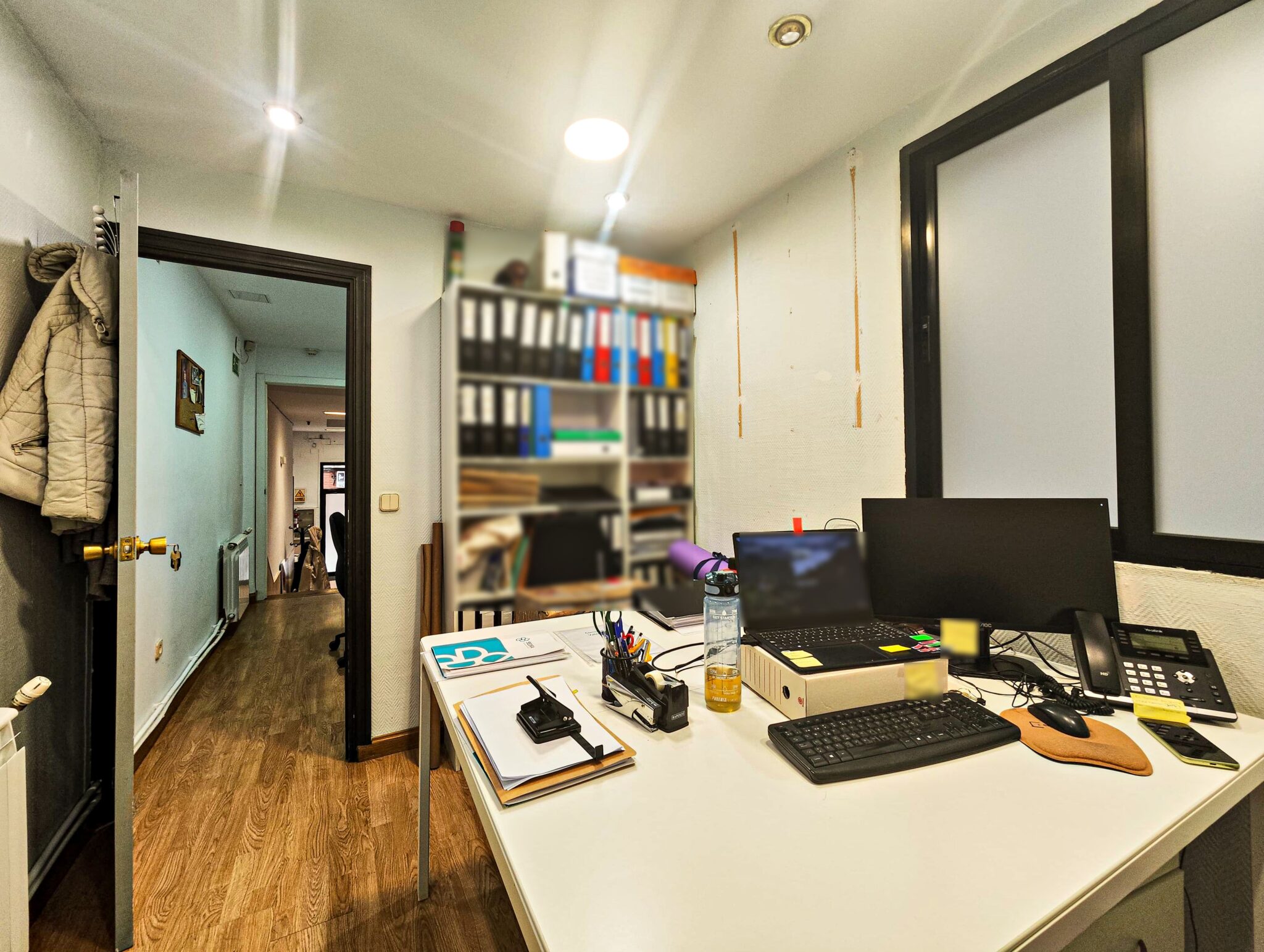 PLANTA BAJA: Pasillo, distribuidores, 2 baños, sala de reuniones, office, dos estancias y patio interior con usufructo compartido.
